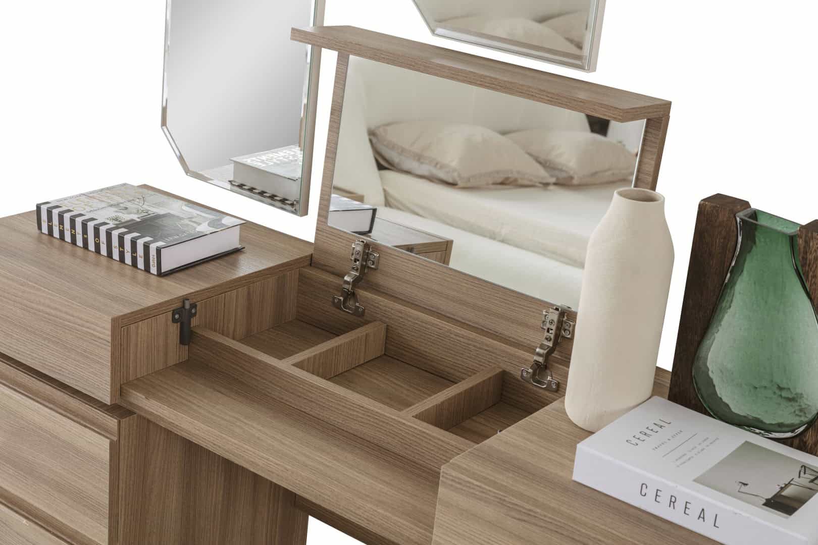 Fonksiyonel bir yatak odası takımı sizi birçok dertten kurtarır. Eşyalarınızı sığdırmanız için geniş bölmeleri ve boy aynaları olan eşyalar daha pratiktir.