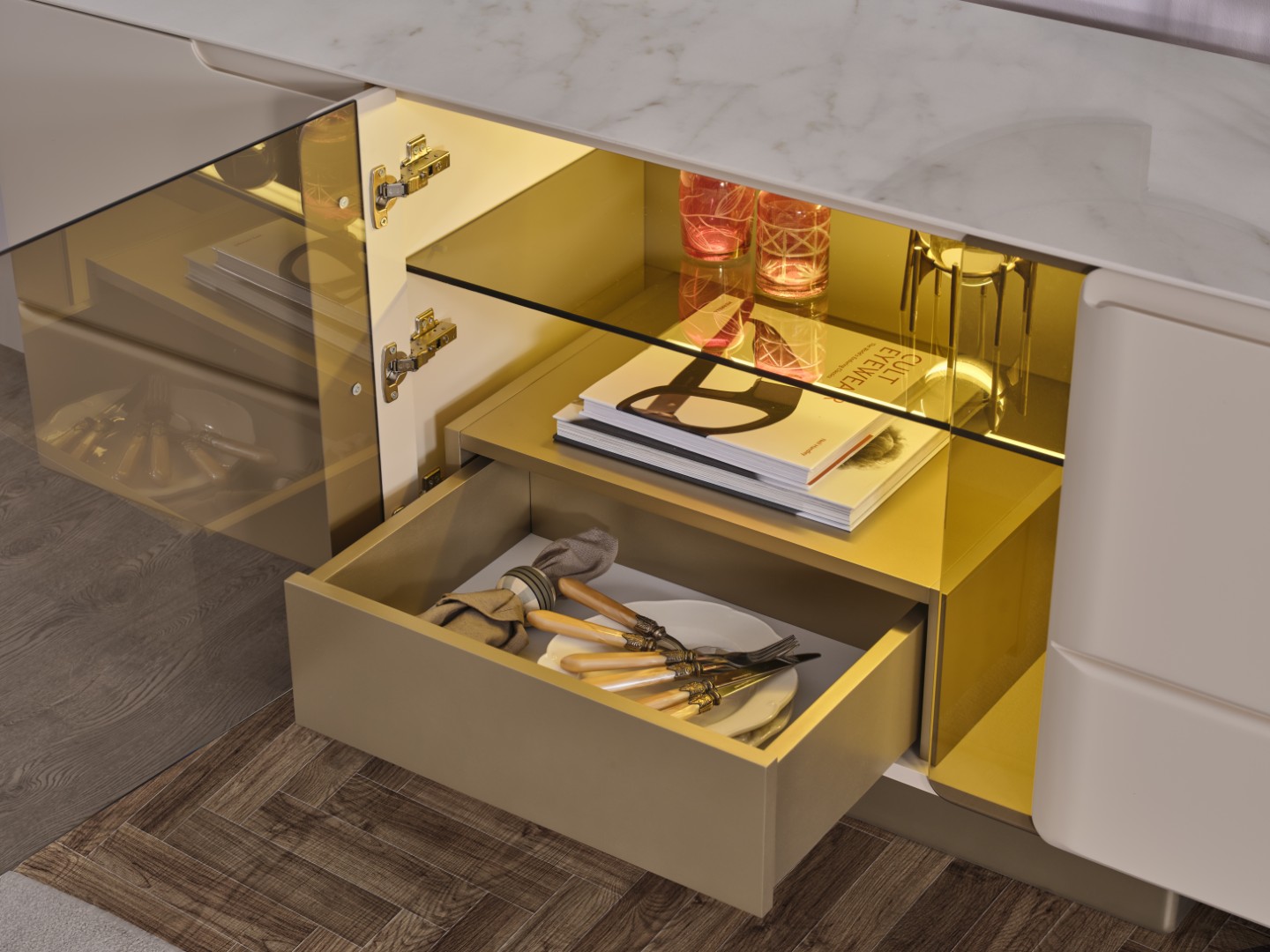 Normal camlı kapak ve cam raf yüzeylerinin temizliği cam sil ya da benzer temizlik malzemeleri ile yapılabilir. Kumlu cam kapak yüzeylerinin temizliği duru suya batırılarak sıkılmış güderiz tarzı bir bez ya da cam bezi yardımıyla, tüm yüzey silinerek yapılabilir.