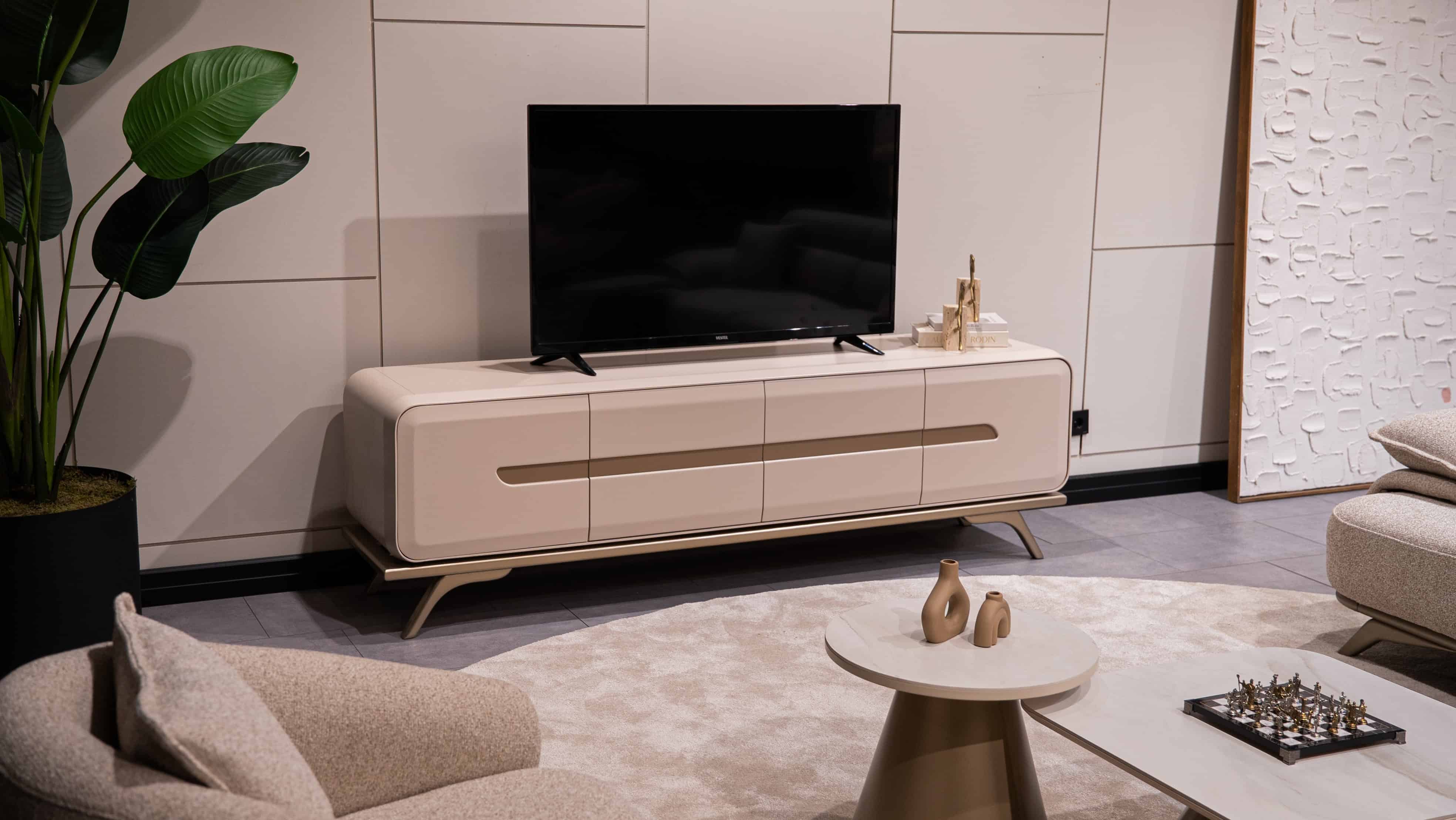 Televizyon ünitesi televizyonu taşımayacağı için kaliteli malzemeden üretilmiş olmalı. İşlevsel bir tv ünitesi sizin birçok eşyanızı taşır ve dağınıklığı engeller.